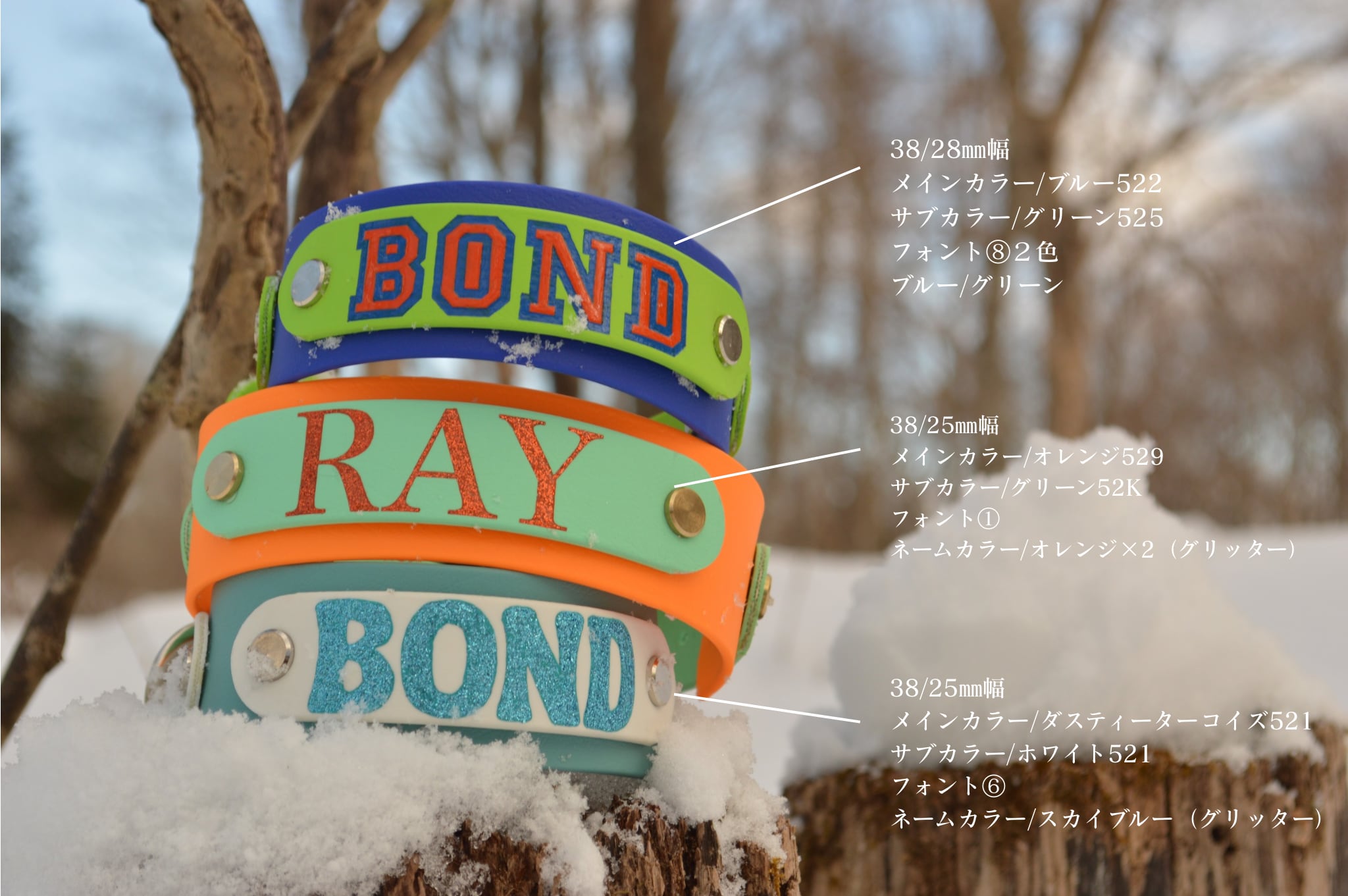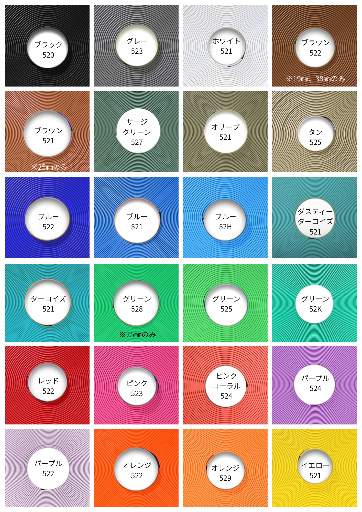 メインカラー38㎜幅、サブカラー25㎜幅