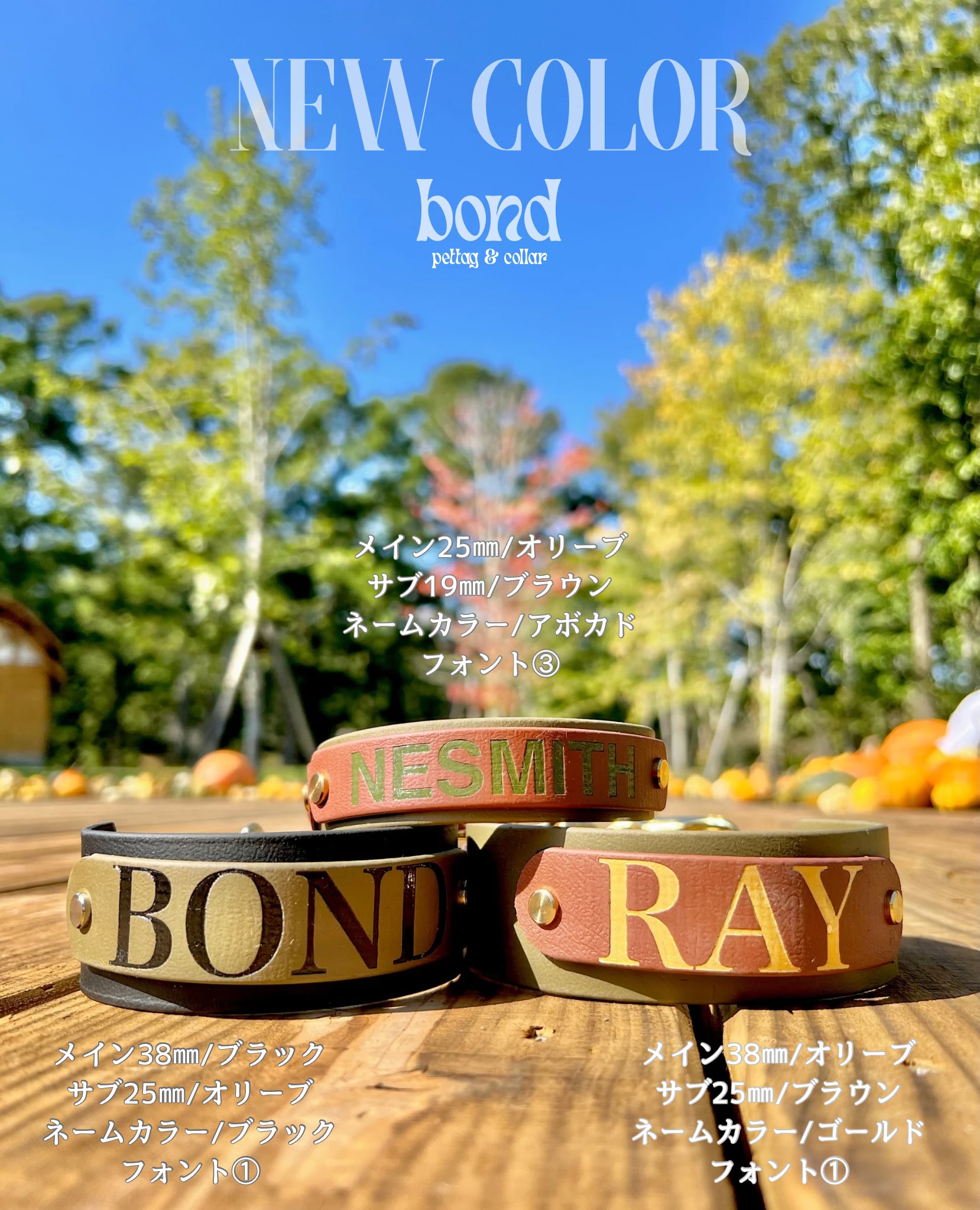 お好きなカラーをお選びいただけますので、愛犬の個性を引き立てる首輪です。