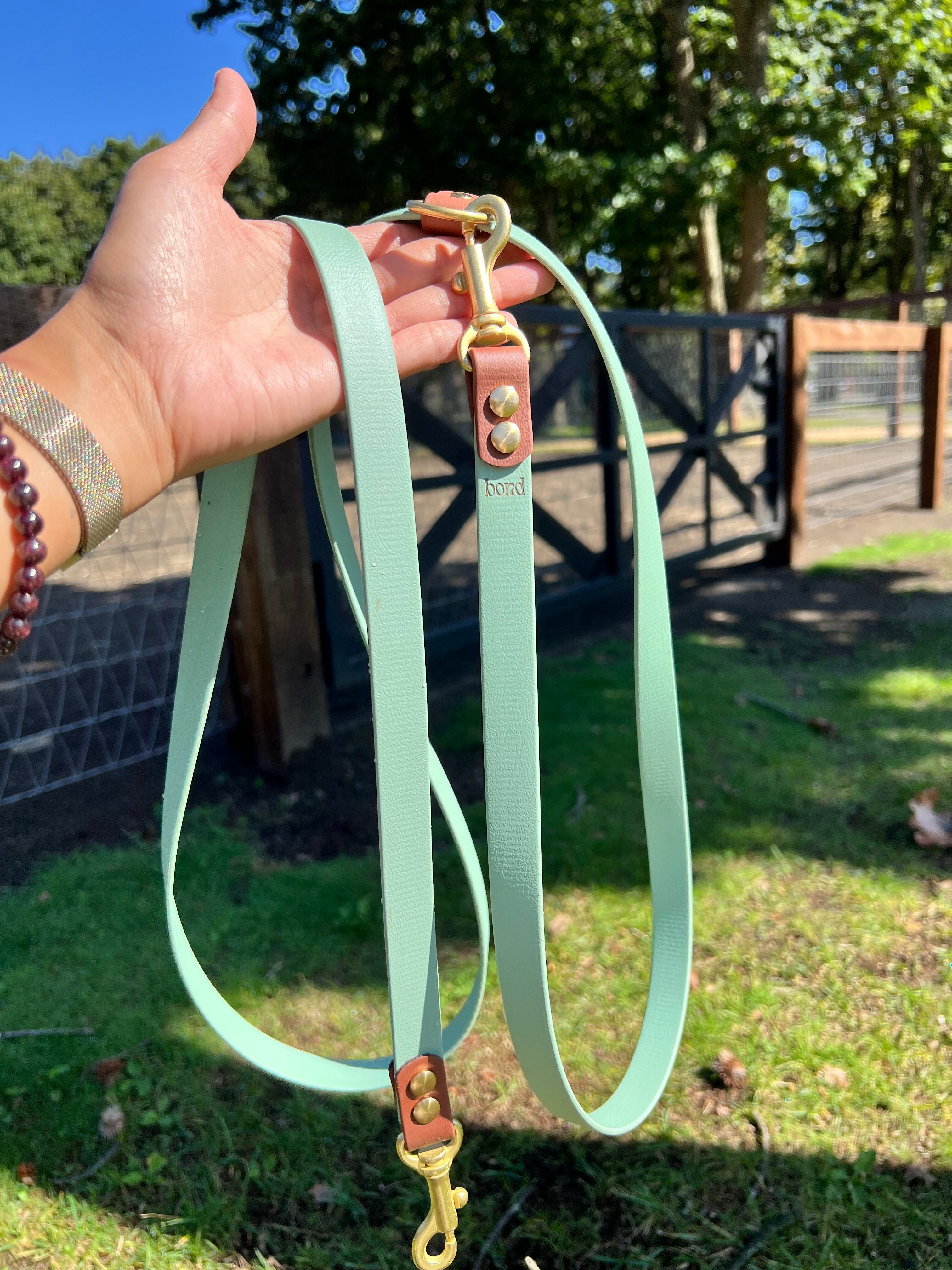 耐久性とおしゃれを兼ね備えたBiothaneショルダーリードは、オハイオ州の工場から取り寄せております。高品質なBiothane素材を使用し、完全防水のため、雨の日や川遊び、泥、雪などでも安心してご使用いただけます。汚れもすぐに水洗いで落ちるので、お手入れも簡単です☺︎色落ちやにおい移りの心配もなく、長時間の使用も快適!さらに、動物性の物は使用しておらず、安全性にも配慮した設計です。馬具などで広く使われる高品質な素材を使用しています。